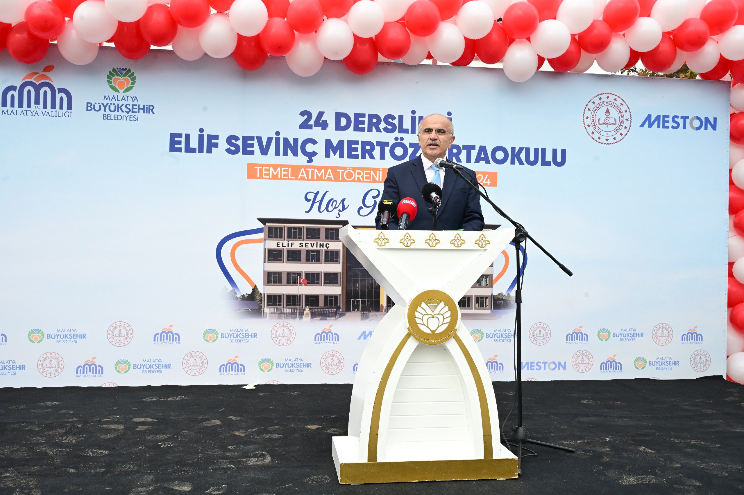 "Hayırsever hemşehrimiz Rıdvan Mertöz’ün, kıymetli eşi Elif Sevinç Mertöz adına yaptırdığı 24 derslikli ortaokulun temel atma töreninde bir araya geldik. Eğitime yapılan her yatırım, aydınlık yarınlarımız için atılan en büyük adımdır. Okulumuzun, Malatya'mıza ve eğitim camiamıza hayırlı olmasını temenni ederim. Bu anlamlı ve kıymetli katkılarından dolayı Mertöz ailesine yürekten teşekkür ediyorum. Rabbim hayırseverlerimizin sayılarını artırsın. Şehrimizi elbirliği ile ayağa kaldıracağız. "